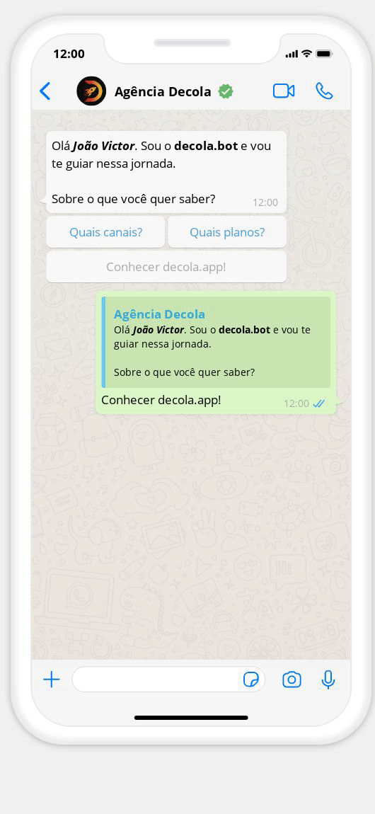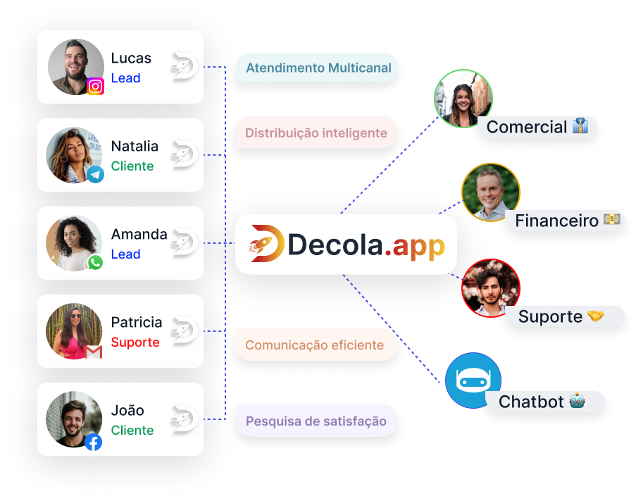 O Decola.app é o sistema de atendimento Omnichannel, que possibilita conectar vários WhatsApps e usuários em uma só plataforma. Tenha um ou vários chatbots 24 horas por dia e direcione seus clientes para seus devidos departamentos, centralize o atendimento de sua empresa em um único sistema, tenha uma visão única da jornada do seu cliente e atenda seu público em diferentes canais, como WhatsApp, Instagram e Messenger do Facebook, email e muito mais.